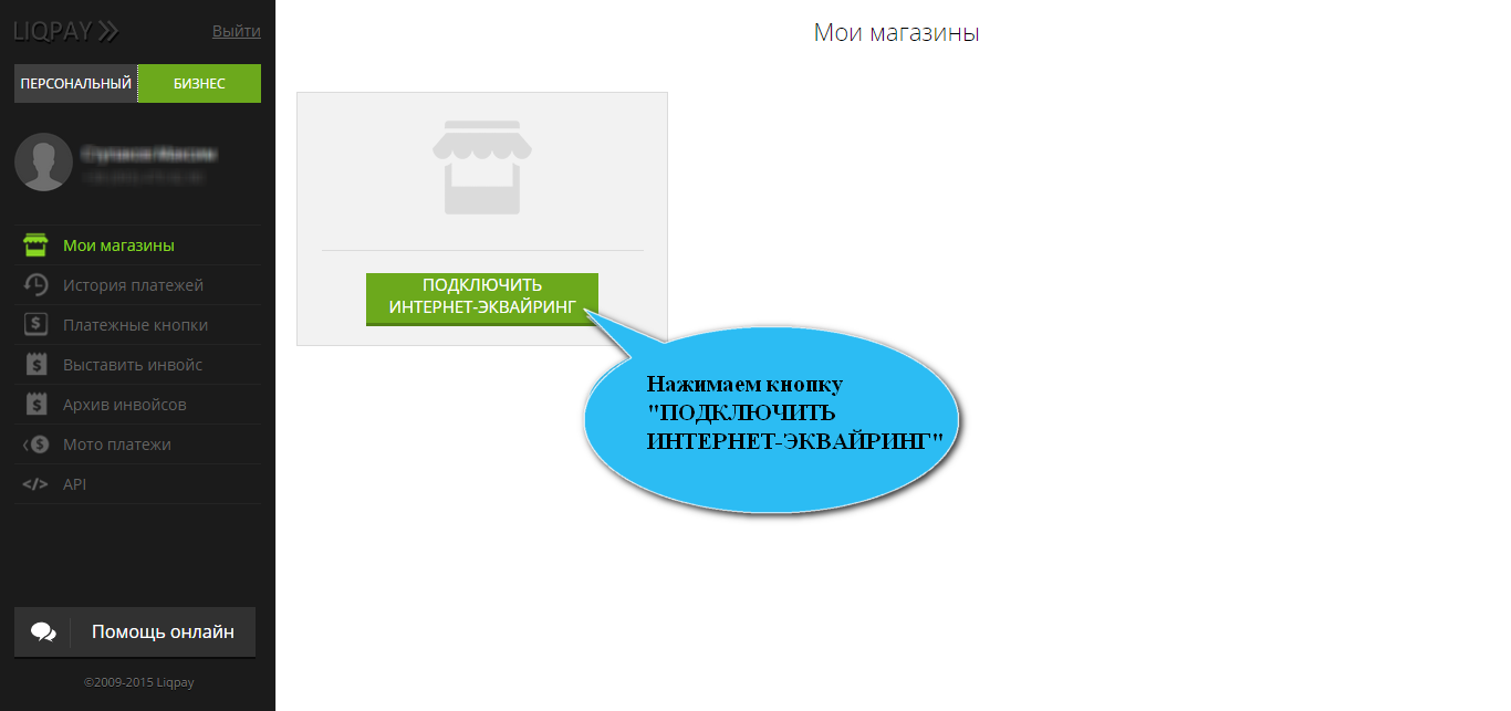3. Создаем новый магазин, нажав на кнопку "ПОДКЛЮЧИТЬ ИНТЕРНЕТ-ЭКВАЙРИНГ"