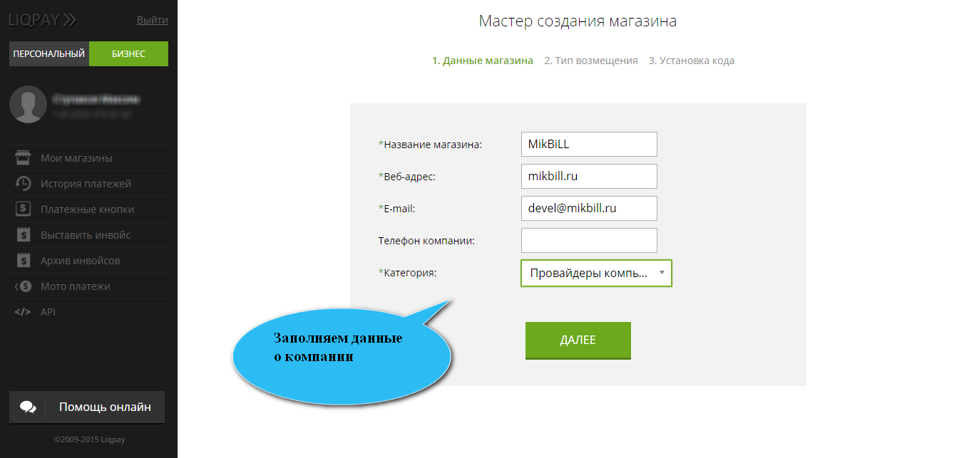 4. Вносим информацию о провайдере для которого подключается платежная система
