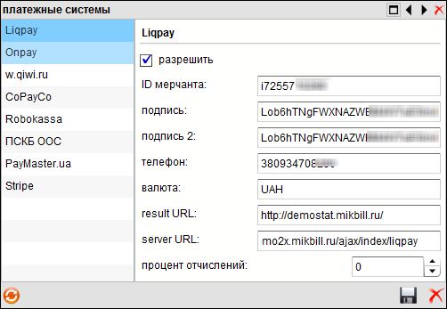 Открываем Админ панель биллинга. Меню Настройки→Системные опции→Терминалы вкладка LiqPay