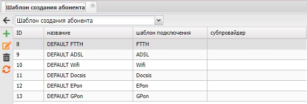 Данный справочник управляет шаблонами с набором данных при подключении(создании) абонента