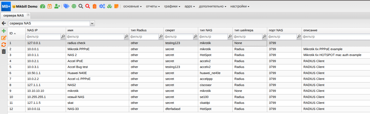 | Секрет | Секретное слово для связи Radius ⇔ NAS |