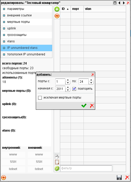 3. Перейдем во вкладку IP Unnumbered vlans и укажем vlan, в котором будут работать абоненты.