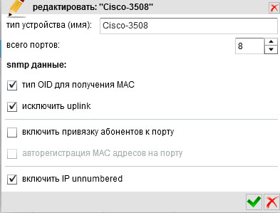 Чтобы включить режим IP Unnumbered необходимо открыть "настройки"-"справочники"-"типы устройств"