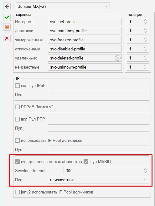 Включив "Пул для неизвестных абонентов" и "Пул MikBiLL".