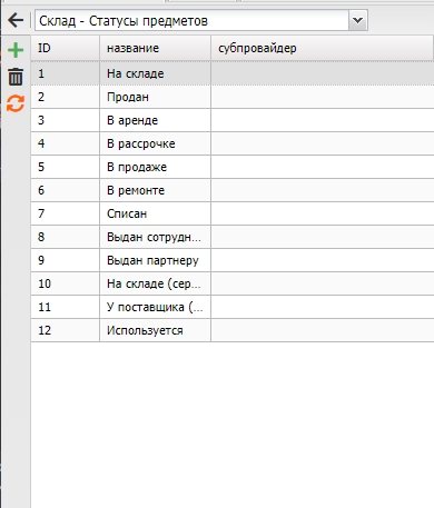 Данный раздел предназначен для работы с списком статусов предметов.