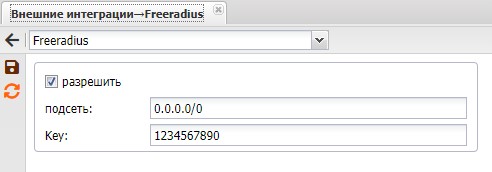 Настройки находятся по пути: Настройки ⇒ Системные опции ⇒ Внешние интеграции, раздел "freeradius"