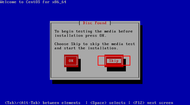 2. Далее будет предложение проверить диск Centos на ошибки. Я его пропускаю (Skip)
