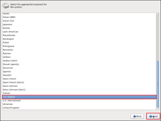 5. Далее выбор раскладки. Настройка аналогична предыдущей, если ставите для Mikbill, оставляем настройку по умолчанию U. S. English. Выбираем, жмем Next