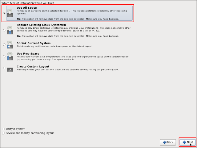 11.1 - если 1 диск и не хотим вручную разбивать дисковое пространство Выбираем "Use ALL Space" и жмем Next (переходим к следующему пункту установки 12)