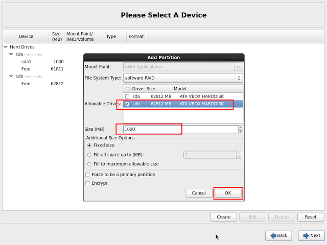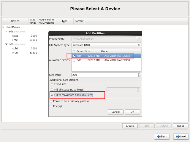 11.2.4 Собираем остальное пространство в raid. Отличие - в настройках Raid Partition каждого диска выбираем использовать оставшееся место (Fill to maximum allowable size)