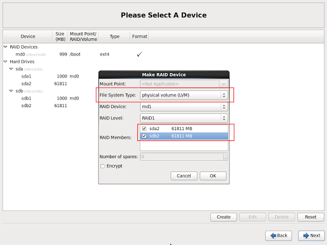 11.2.5 Собираем раздел /boot. Для этого выбираем Create - RAID Device - Create