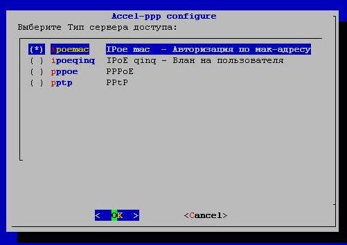 Установщик запросит выбрать тип сервера доступа, для примера выбран IPoE с авторизацией по MAC-адресу: