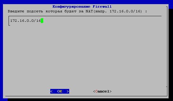 Запросит ввести подсеть, которая будет за NAT. Для примера введём 172.16.0.0/16