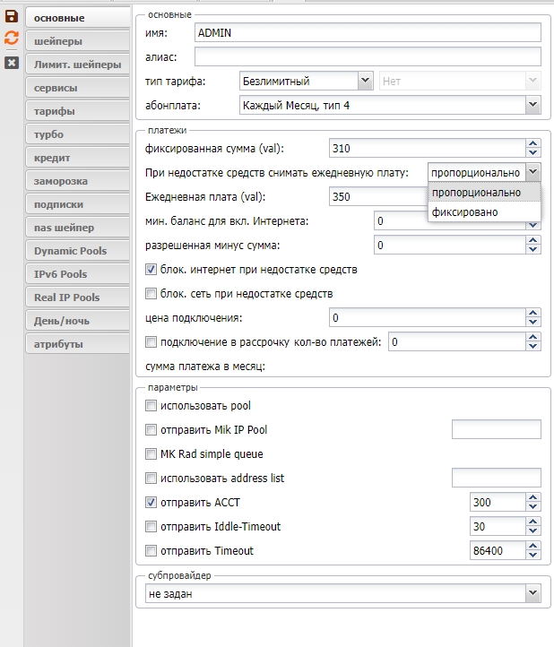 Если пропорционально то в Ежедневная плата нужно указать полную сумму за месяц, если же выбрали фиксировано то указать цену за один день.