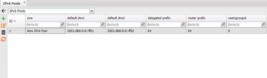 Для создания IPv6 пула, необходимо зайти справочник IPv6 Pools (Настройки ⇒ Система ⇒ IPv6 Pools)