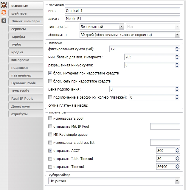 Тип тарифа: 30 дней (обязательные базовые подписки)
