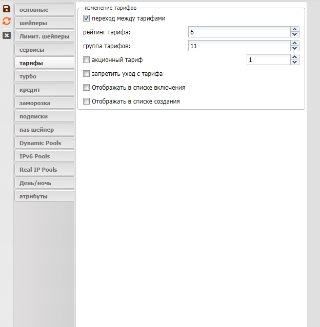 После создания тарифа, нужно добавить базовые подписки которые будут входить в состав тарифа в качестве обязательных к оплате