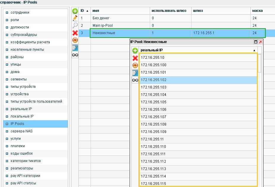 2. Создадим пул для неизвестных абонентов и наполним его адресами