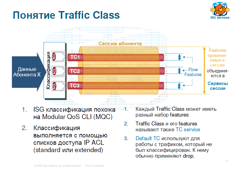 Когда у нас появляется сессия абонента с фичами, появляются понятия трафик классов.Вкратце одной картинкой это описывается так: