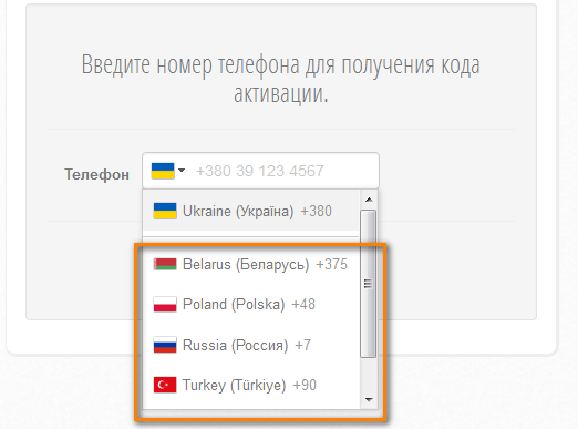 Поле ввода телефона
