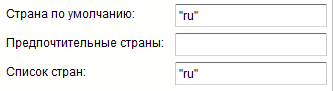 Страны в указываются в формате "ru" - где в кавычках код страны по стандарту ISO 3166-1