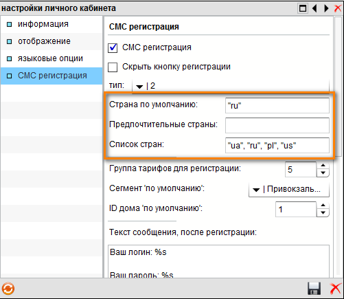 Поле Список стран имеет ограничение в 12 стран (64 символа)
