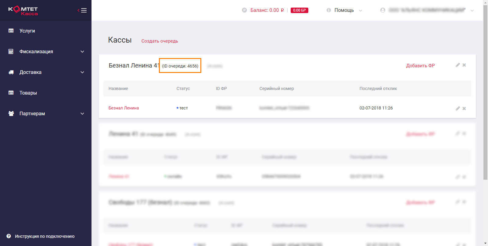 - Переходим в меню кассы и создаем очередь выбрав ранее созданный магазин (основная очередь не подходит!):