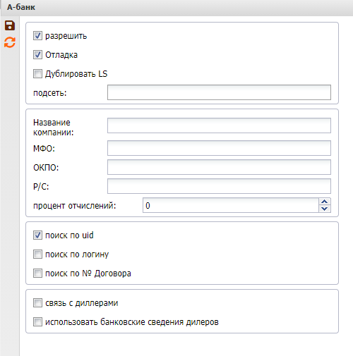 Так же Вам необходимо в системных опциях включить свойство "Привязать к дилеру" в настройке "А-Банк".