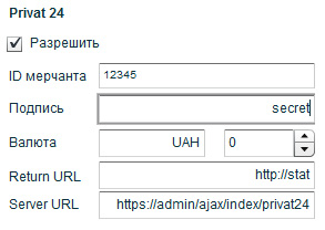 | ID Мерчанта | Пишем свой ID из приват24 (мерчант) |