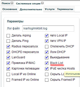 для включения функции "Черного списка" необходимо открыть "Настройки"→"Системные опции" вкладка дополнительно