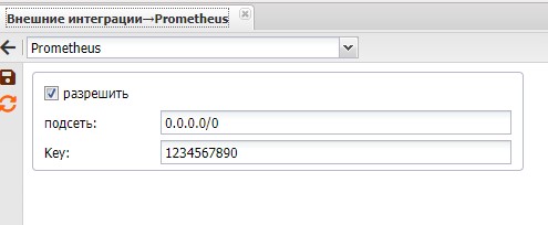 Настройки находятся по пути: Настройки ⇒ Системные опции ⇒ Внешние интеграции, раздел "prometheus"