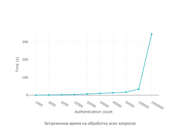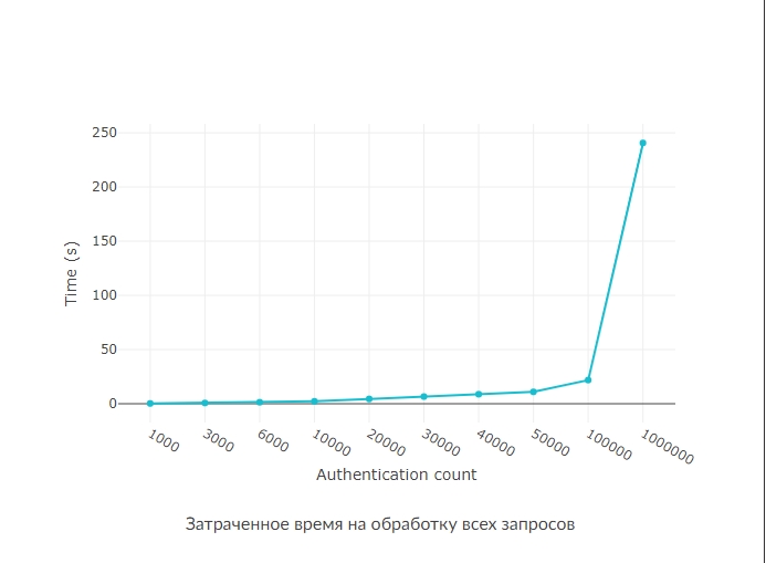 В данных тестах мы прогоняли от 1000 до 1.000.000 запросов авторизации