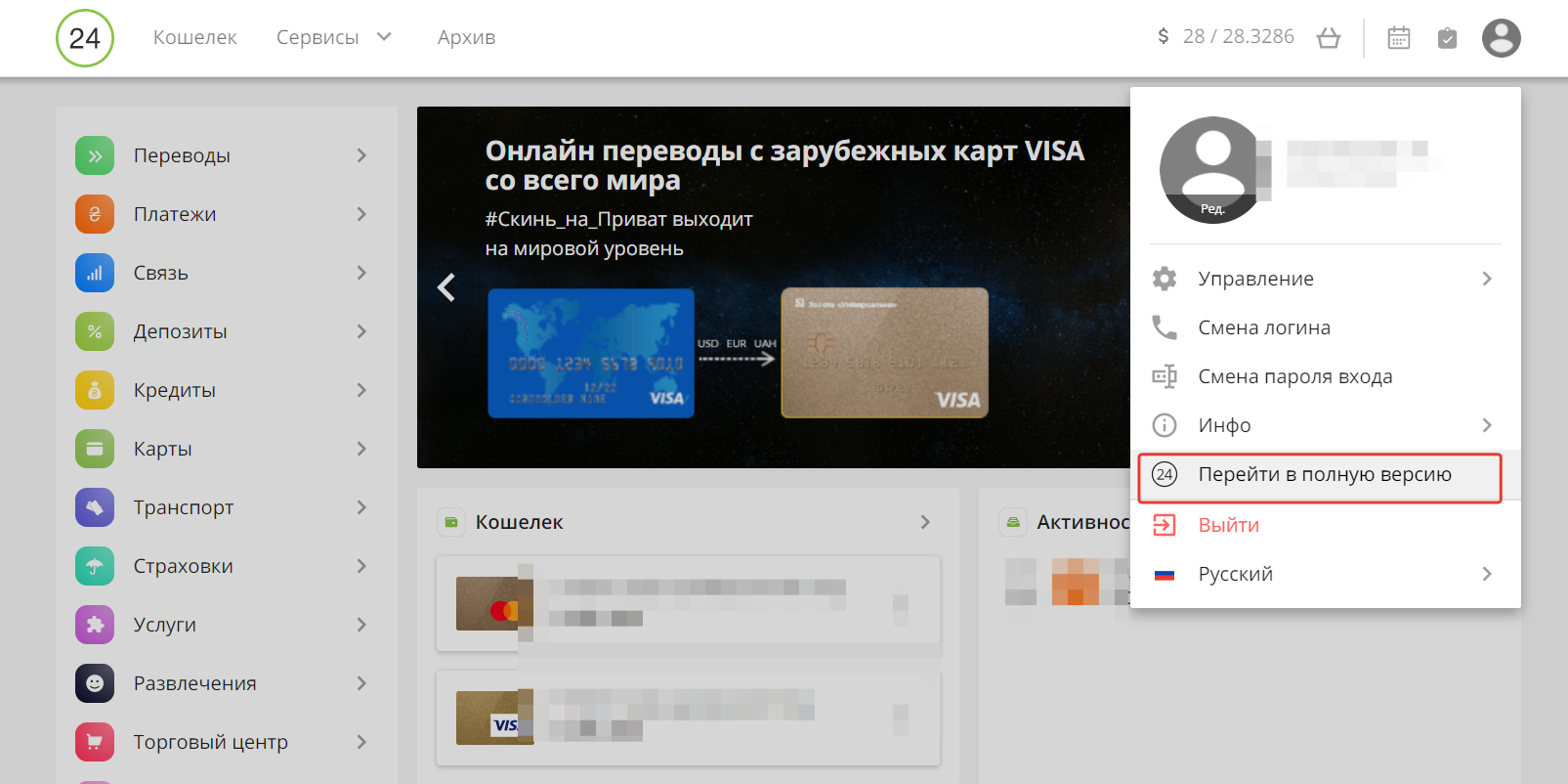 2. Переходим в полную версию (старую) кабинета Приват24