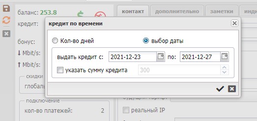 Выдать кредит с | Дата при наступлении которой кредит активируется абоненту. Для изменения требуются права Разрешить выбирать дату начала кредита |