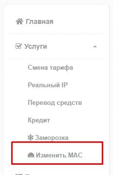 Если Вы хотите оставить возможность смены МАК в API (боте) но запретить изменять в личном кабинете, то можете отключить пункт смены МАС адреса в настройках меню.