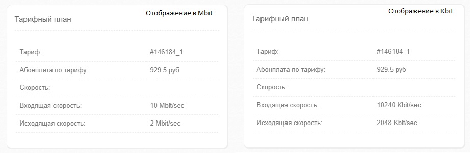 | Отображать скорость в Мбит | Переключает отображение скорости тарифа из Kbit в Mbit (если показ скорости разрешен на тарифе). |