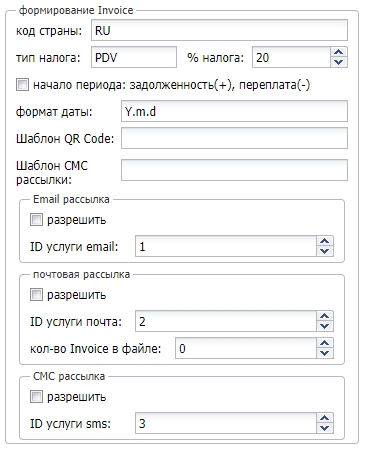 | Разрешить | Разрешает отправку invoice по СМС |