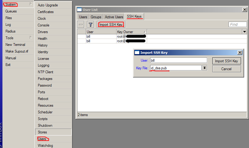 где bill - логин host - ip адрес сервера. (учитываем что вы выполняете команду на сервере с MikBIll а ключ закачали на другой сервер , его IP и вводите) (простите за такую ремарку но увы люди просили прокомментировать)
