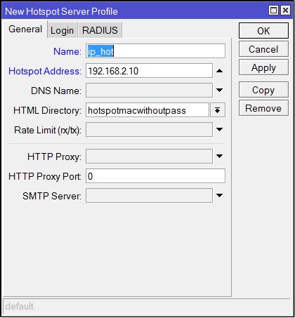 Откройте IP-Hotspot-Server Profiles закладка Login.