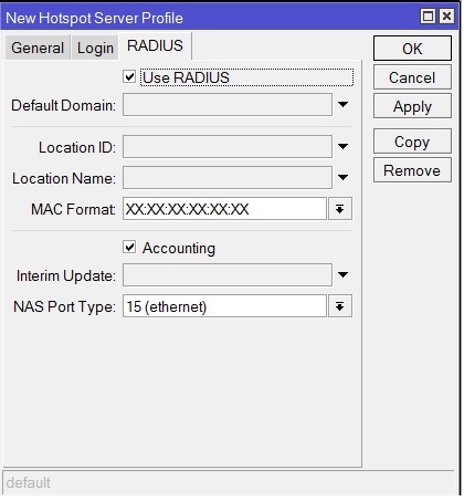 Откройте IP-Hotspot-Server Profiles закладка RADIUS.
