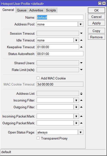 Откройте IP-Hotspot-Server Profiles закладка General.
