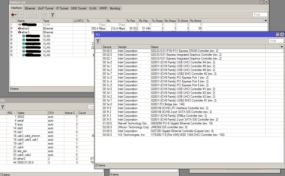 2 PCI интел используются чтобы разгрузить работу и 50% абонентских vlan идет на одну карту остальнео на другую. при использовани PCI-E карты этого бы не потребовалось.