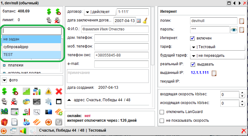 Для того, чтоб передать абонента определённому субпровадеру, всё, что нужно сделать - это выбрать необходимого субпровайдера в карточке абонента: