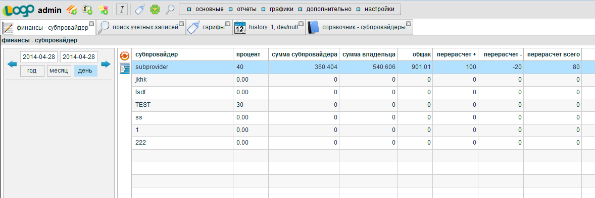 Вот так выглядит отчёт по расчётам с субпровайдерами: