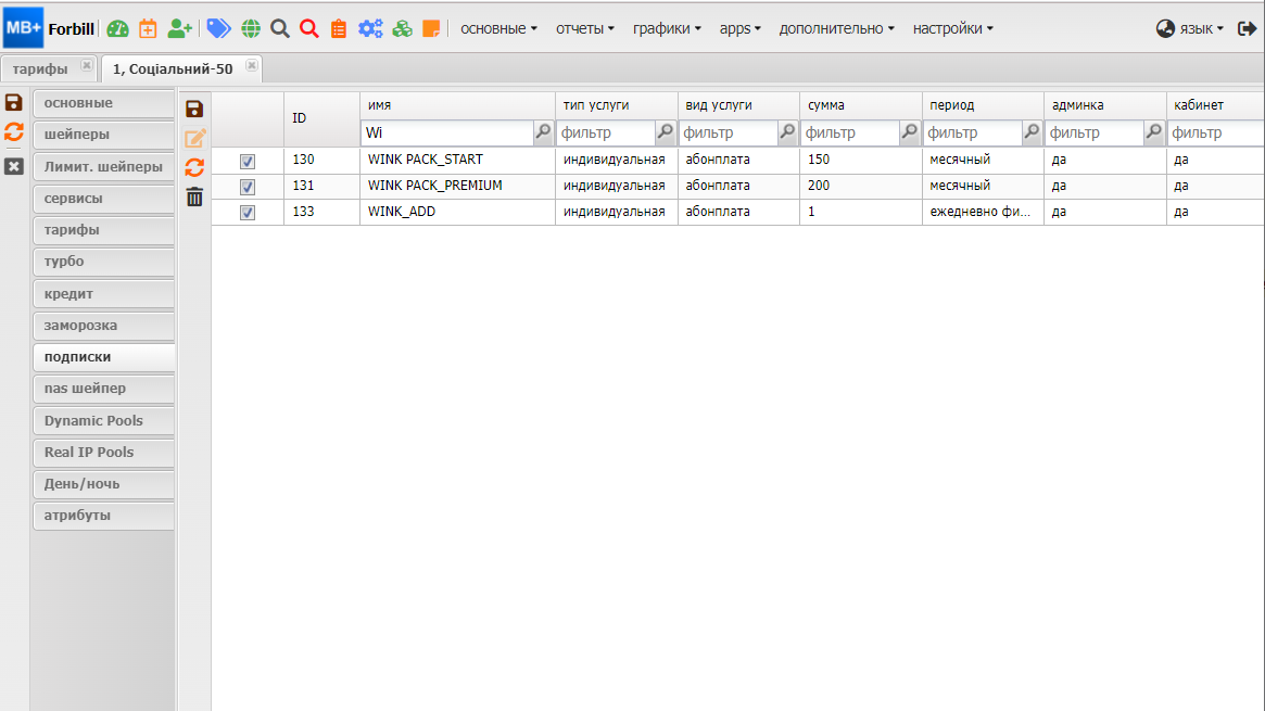 2. Указываем группу для услуг Wink больше 1