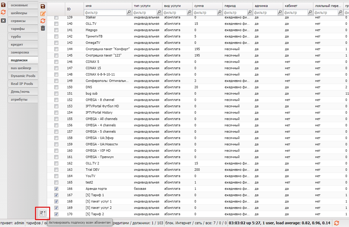 Для принудительной массовой активации, воспользуйтесь кнопкой массовой активации выбранной подписки на тарифе