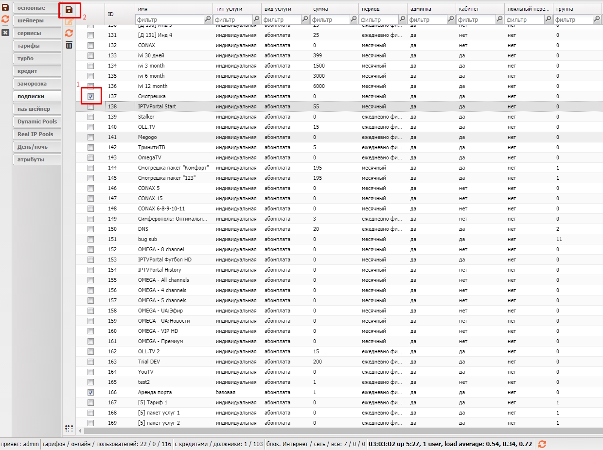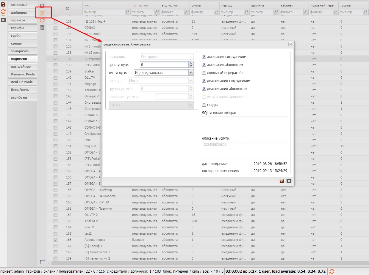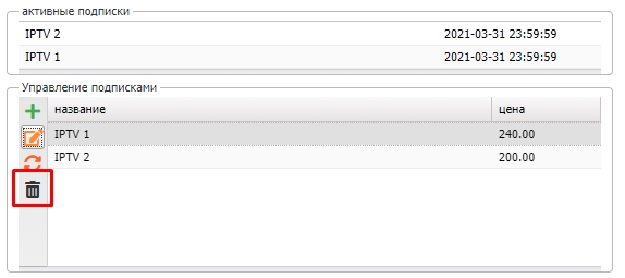 Необходимо выделить нужную подписку и нажать "редактировать" (для редактирования подписки должна быть подключена к тарифу)