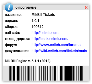 По нажатию на нее появляется всплывающее окно с информацией о версии и сборке программы.